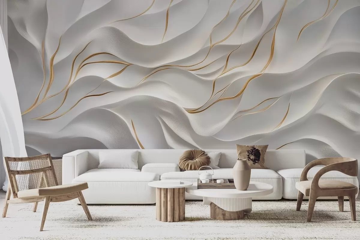 Gray embossed waves with yellow accents - Wall mural (No. w09724)