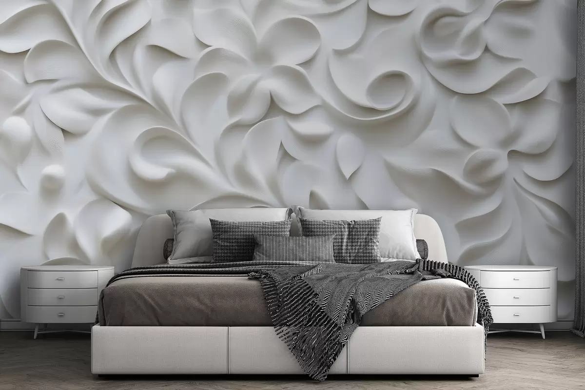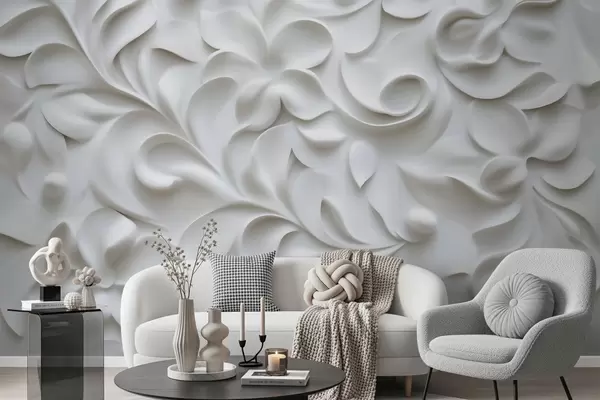Gray dimensional floral ornament - Wall mural (No. w09727)