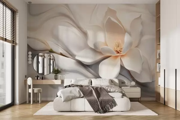 Three-dimensional white magnolia with marble texture imitation in relief - Wall mural (No. w09729)