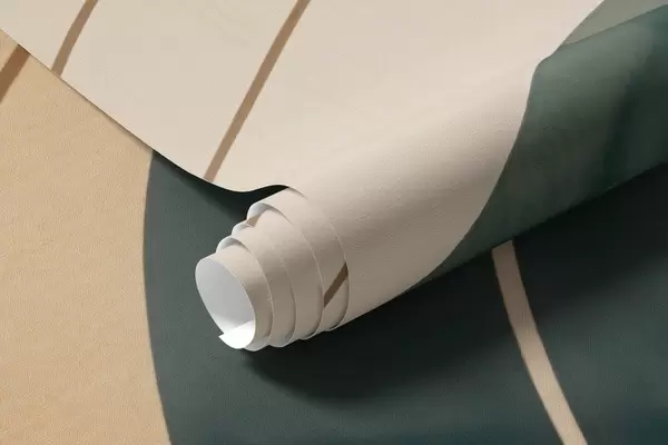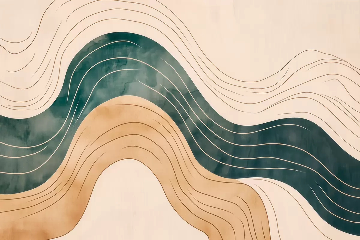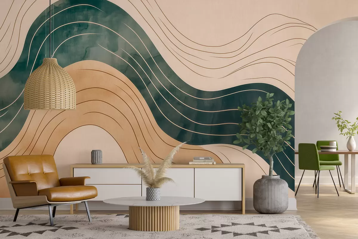 Abstract wavy lines in natural sand and emerald tones - Wall mural (No. w09732)