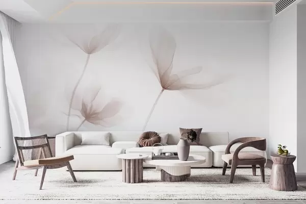 Airy beige flowers in minimalist light style - Wall mural (No. w09734)