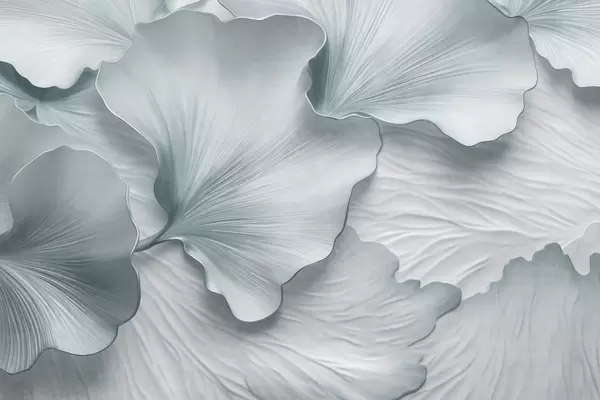 Textured, beige and white ginkgo leaves petals with delicate organic print - Wall mural (No. w09741)