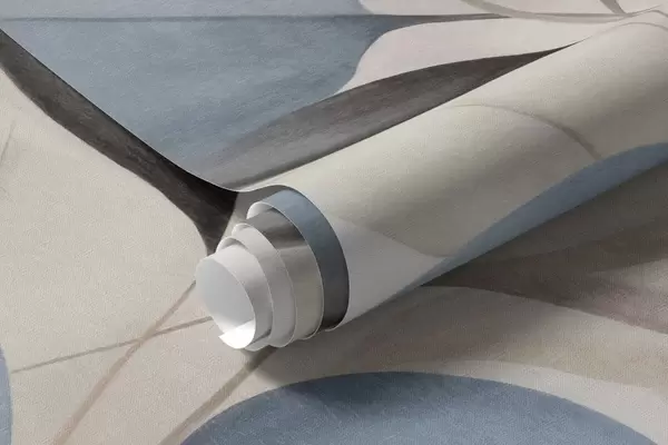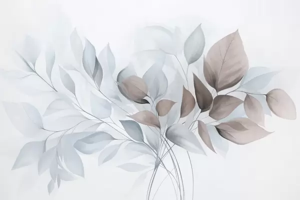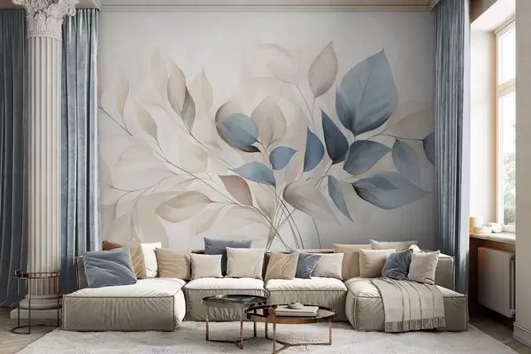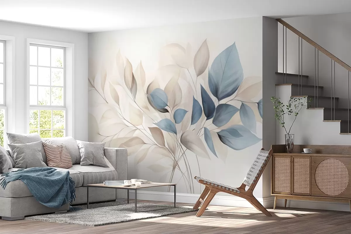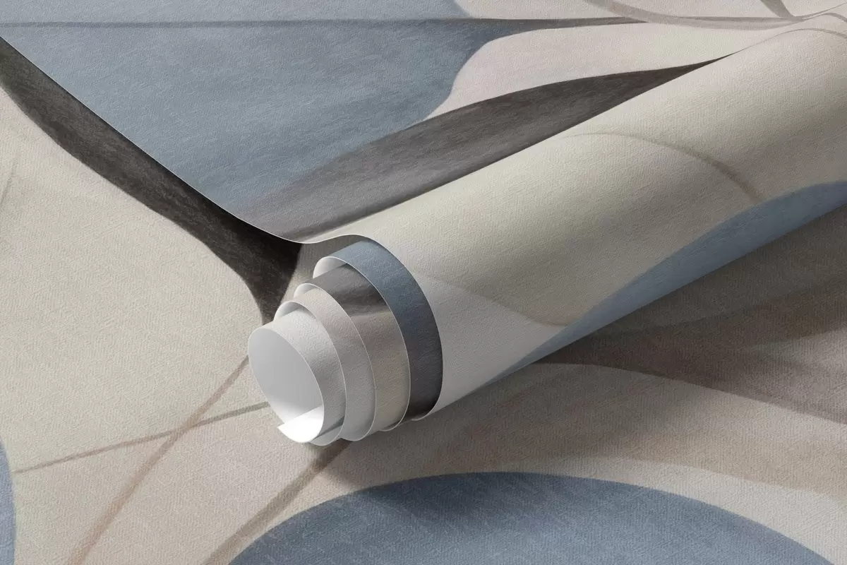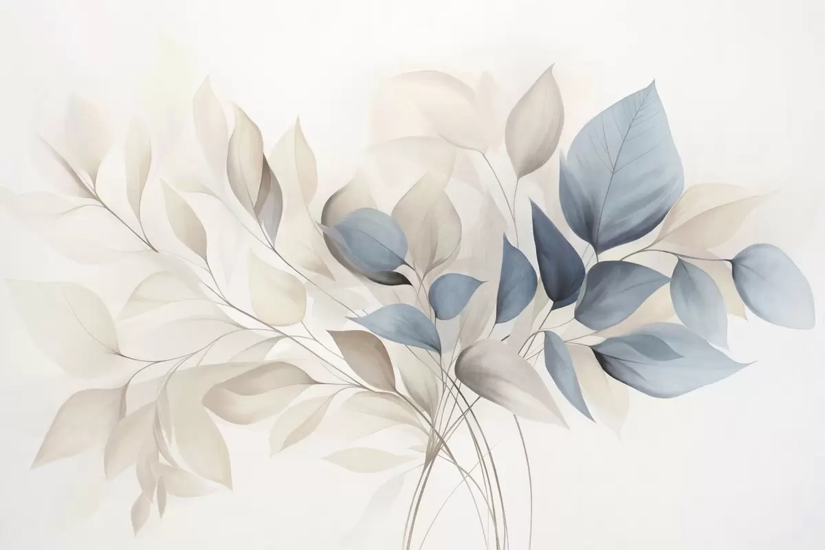 Abstract translucent leaves in shades of blue, beige and cream, textured art - Wall mural (No. w09744)