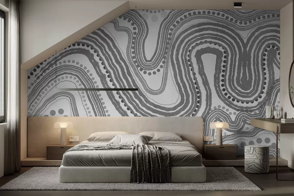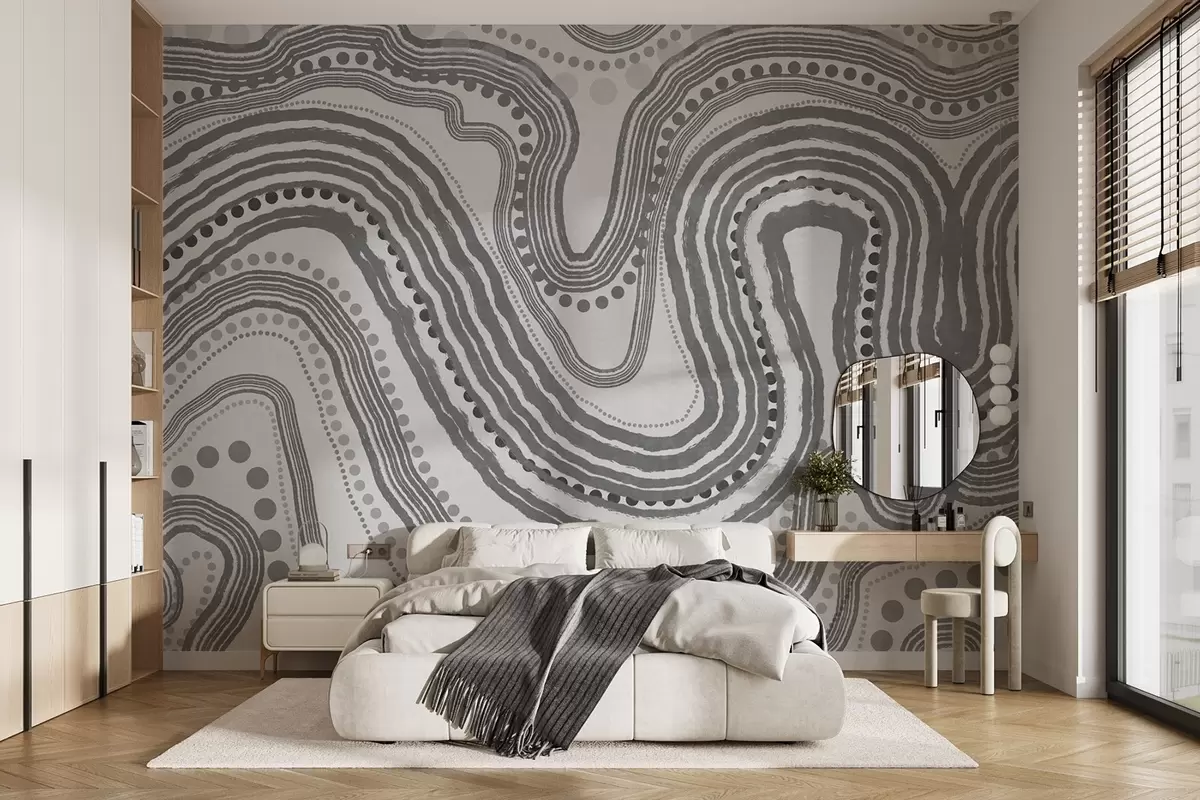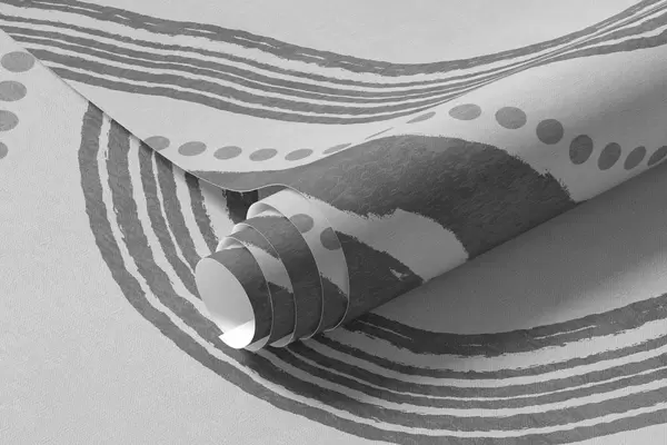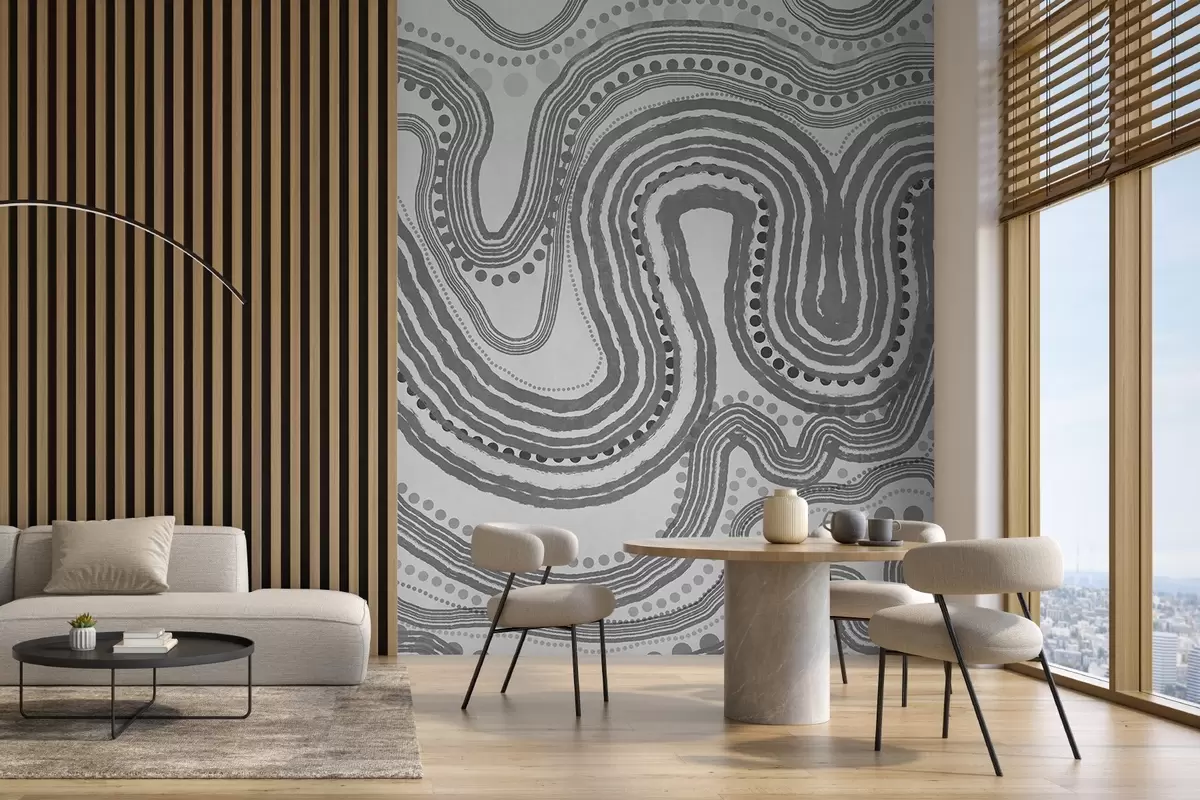 Abstract dark gray wavy lines and dots, modern textured art - Wall mural (No. w09747v2)