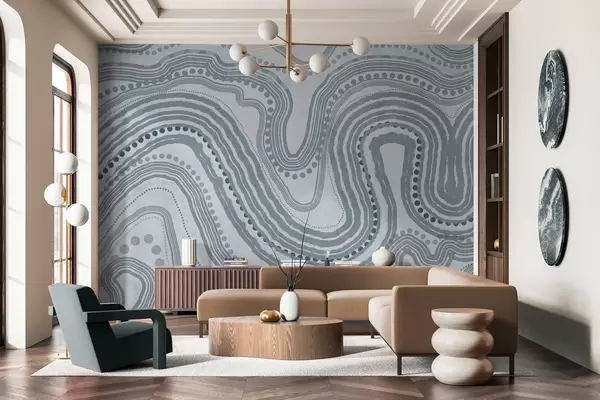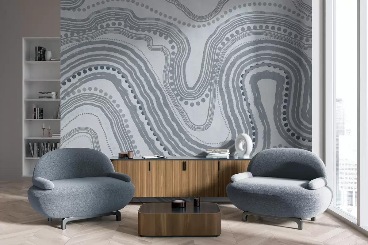 Abstract blue wavy lines and dots, modern textured art - Wall mural (No. w09747v3)