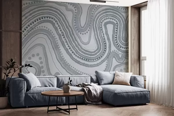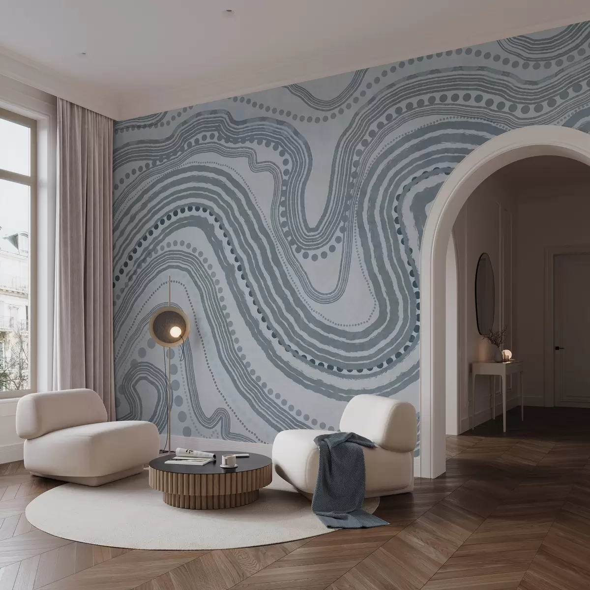 Abstract blue wavy lines and dots, modern textured art - Wall mural (No. w09747v3)