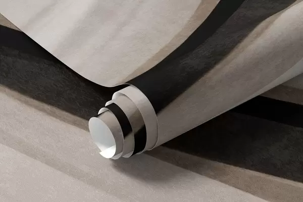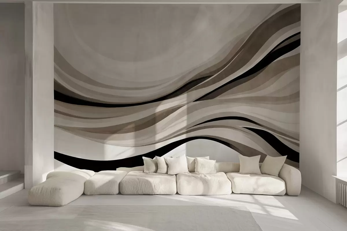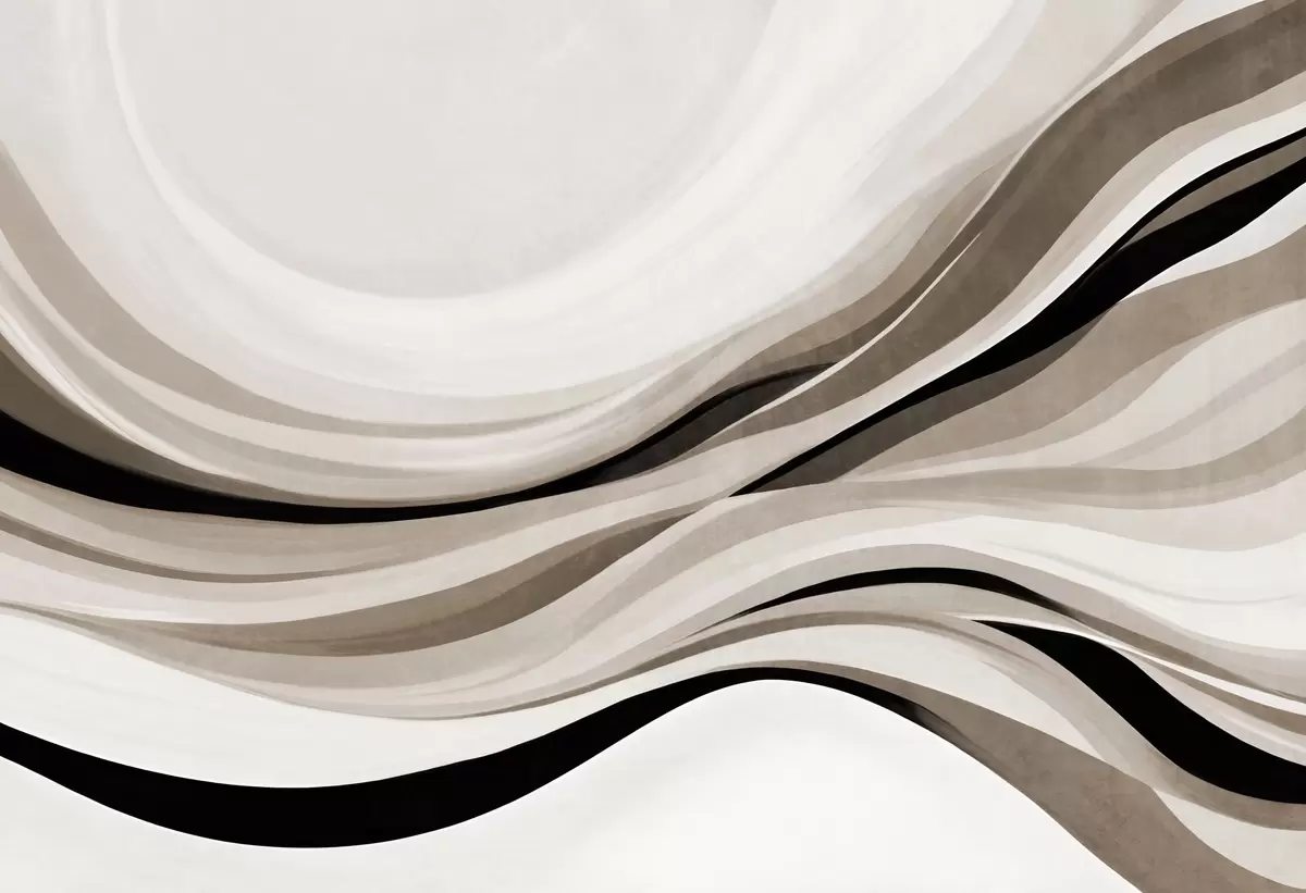 Abstract wavy lines in shades of beige and black against a light background, textured art - Wall mural (No. w09748)