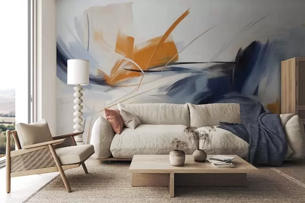 Abstract painting style with orange and blue textured brushstrokes - Wall mural (No. w09755)