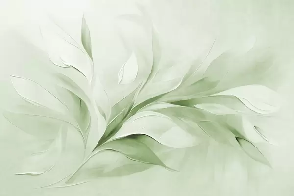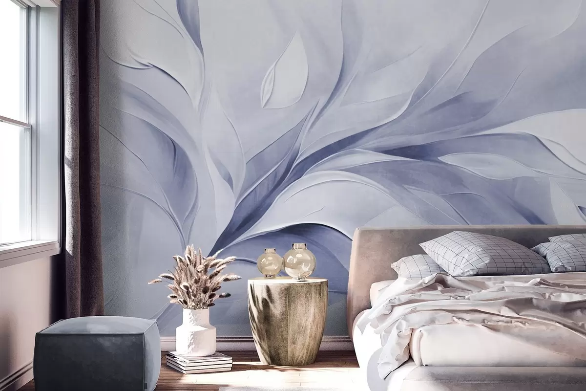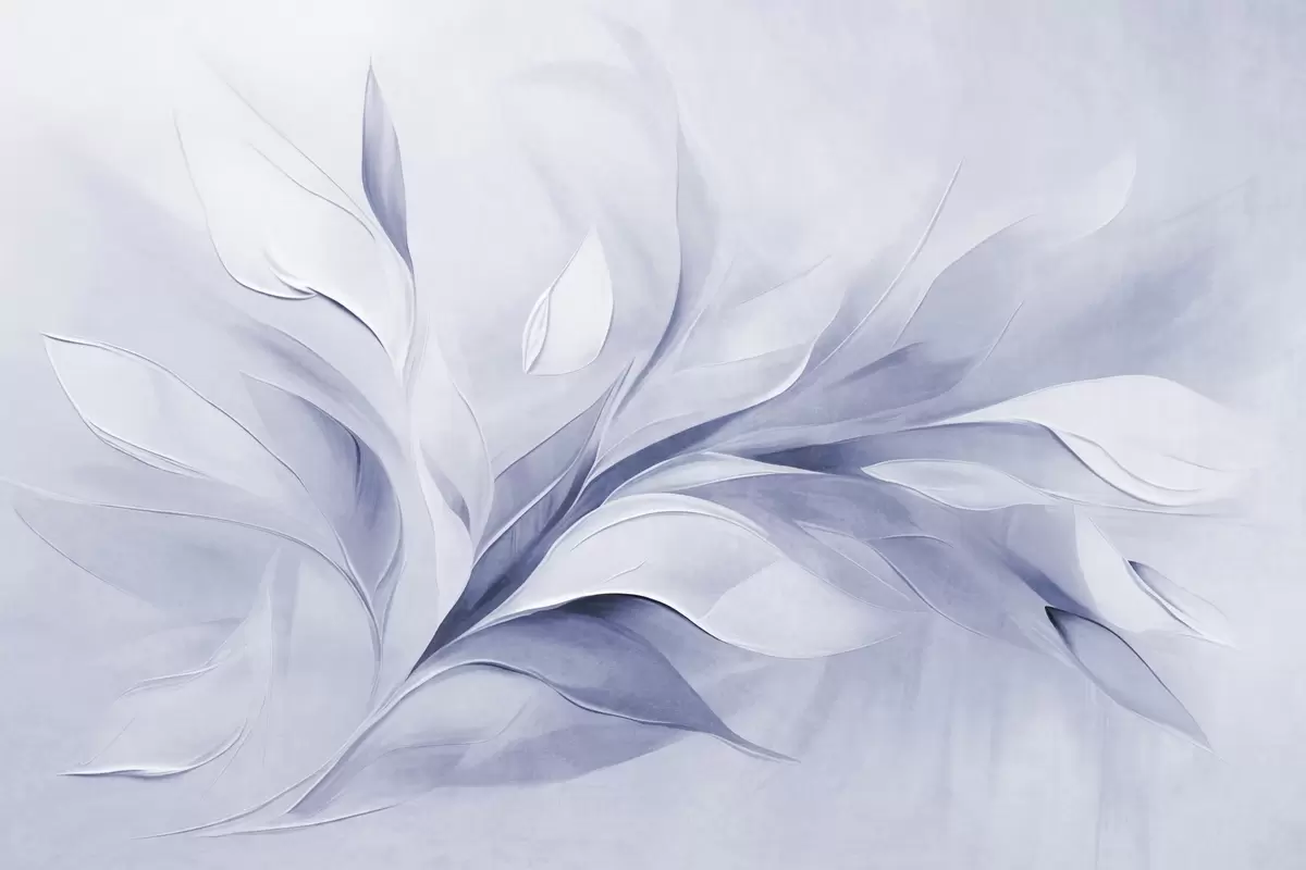 Abstract textured painting style of pale blue and white flowing leaves - Wall mural (No. w09765)