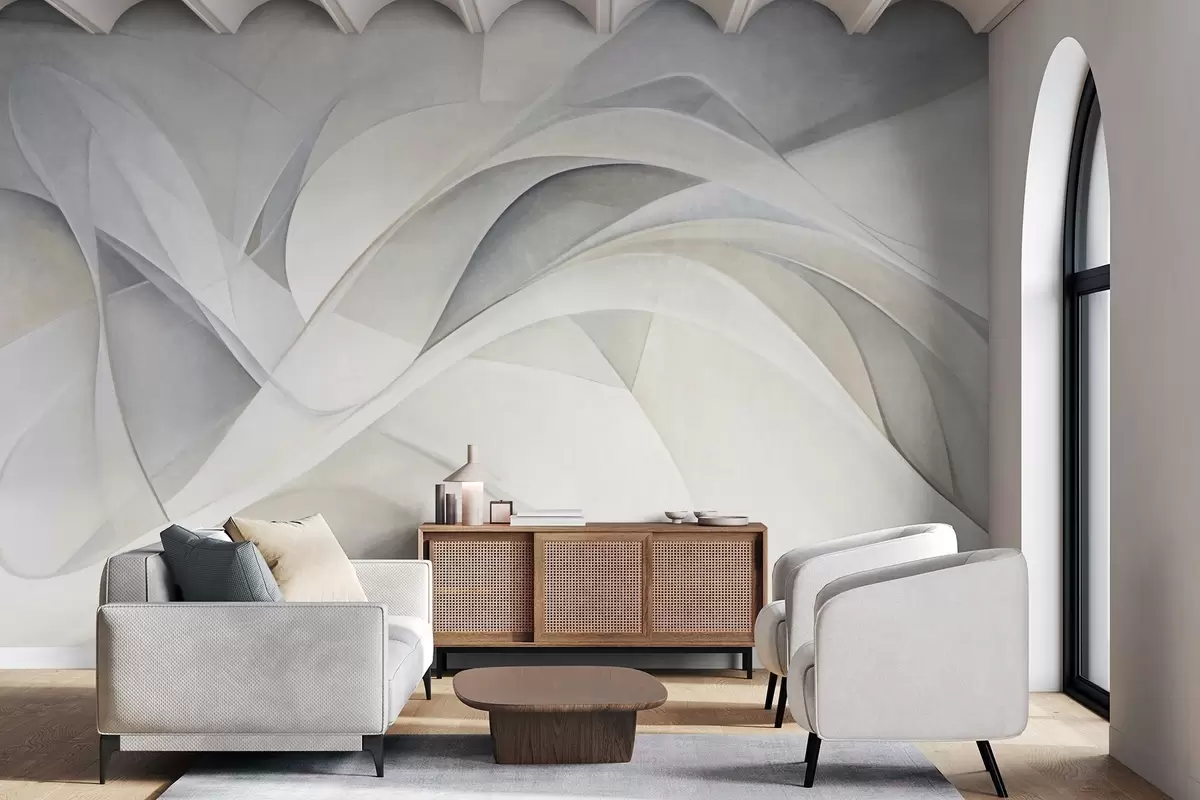 Abstract flowing shapes, textured modern art - Wall mural (No. w09766)