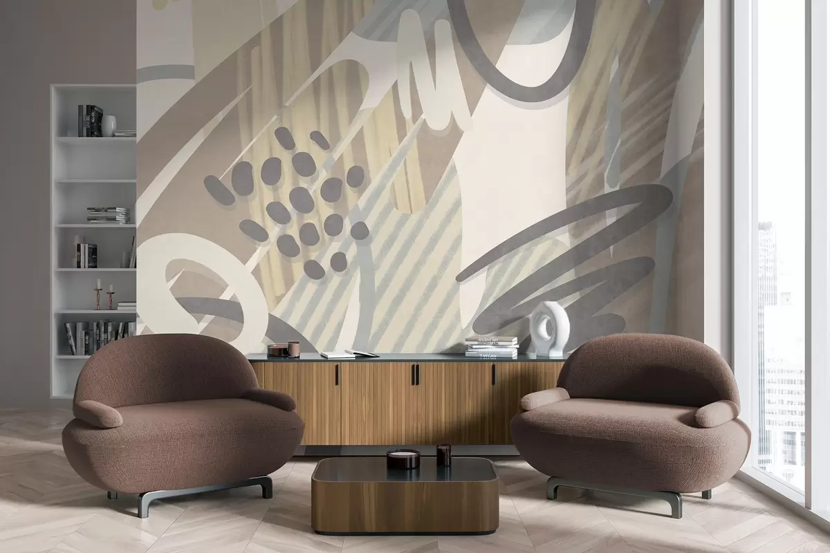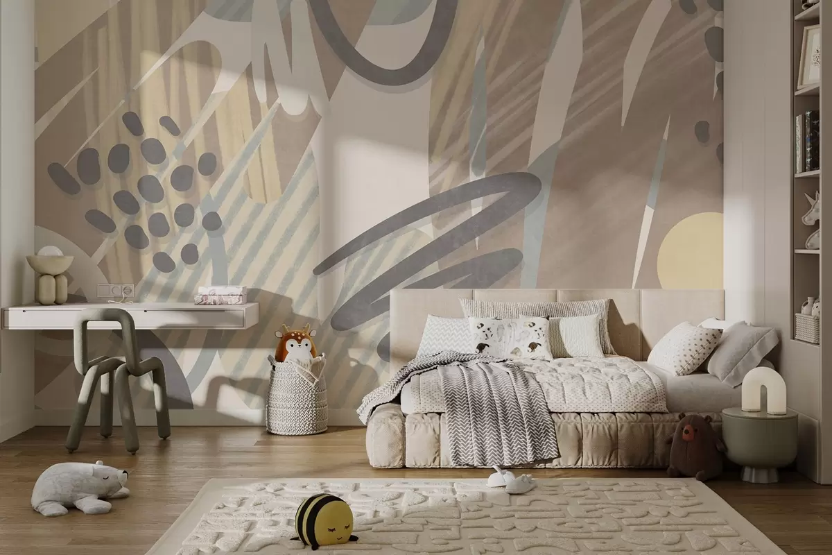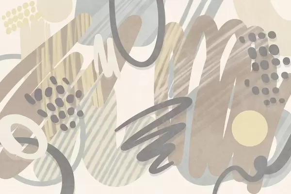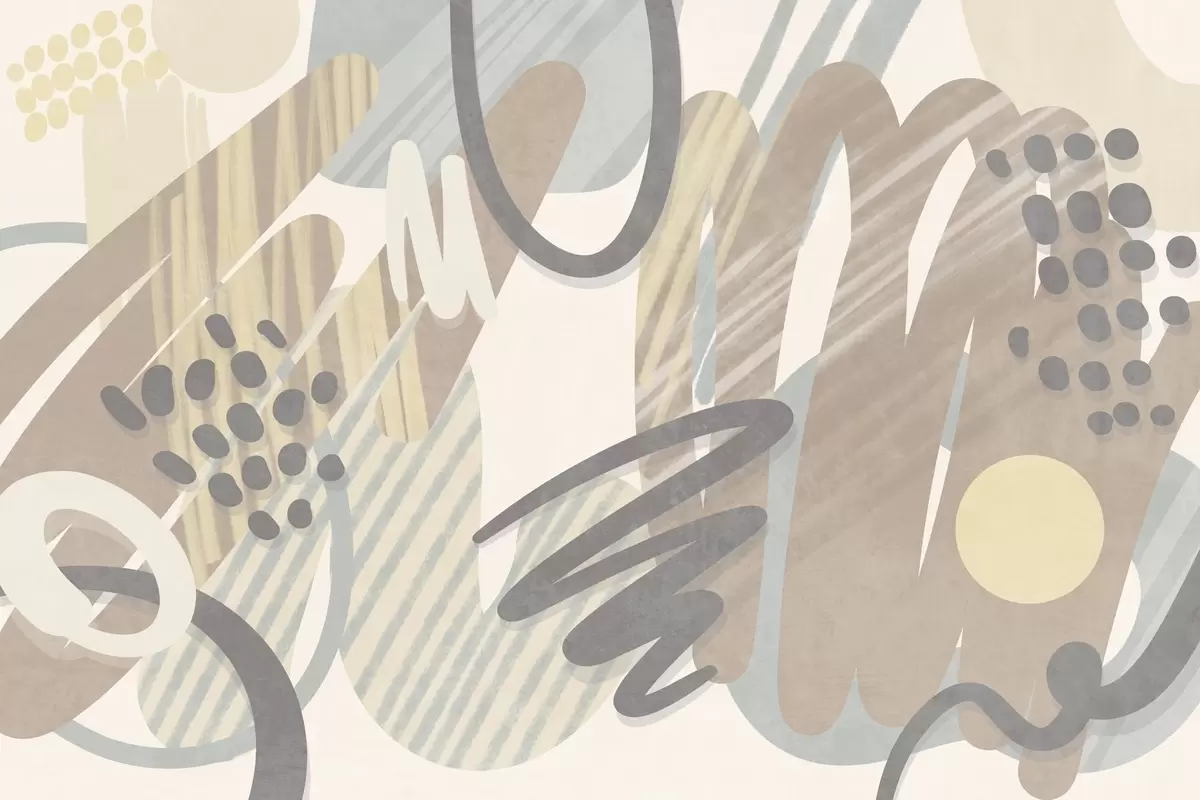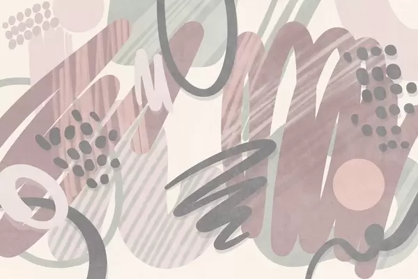 Abstract textured print with organic shapes, scribbles and dots in muted pastel colors - Wall mural (No. w09774)