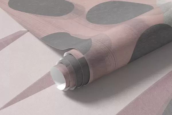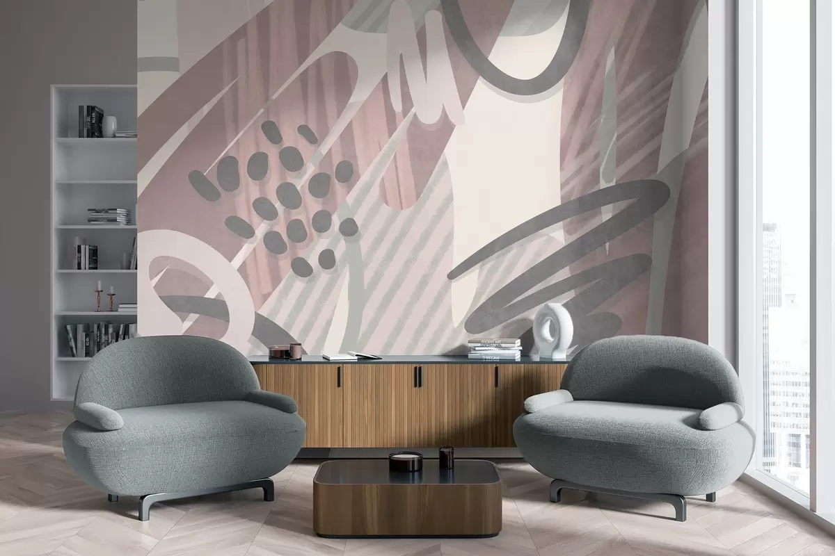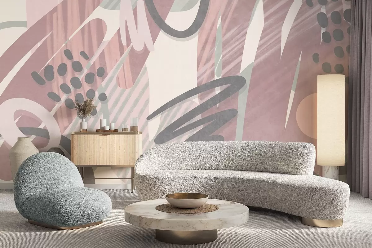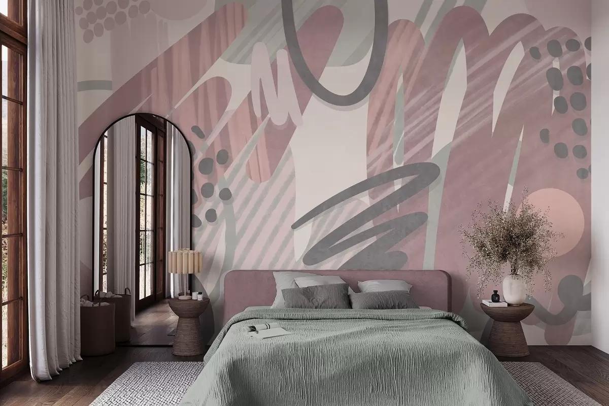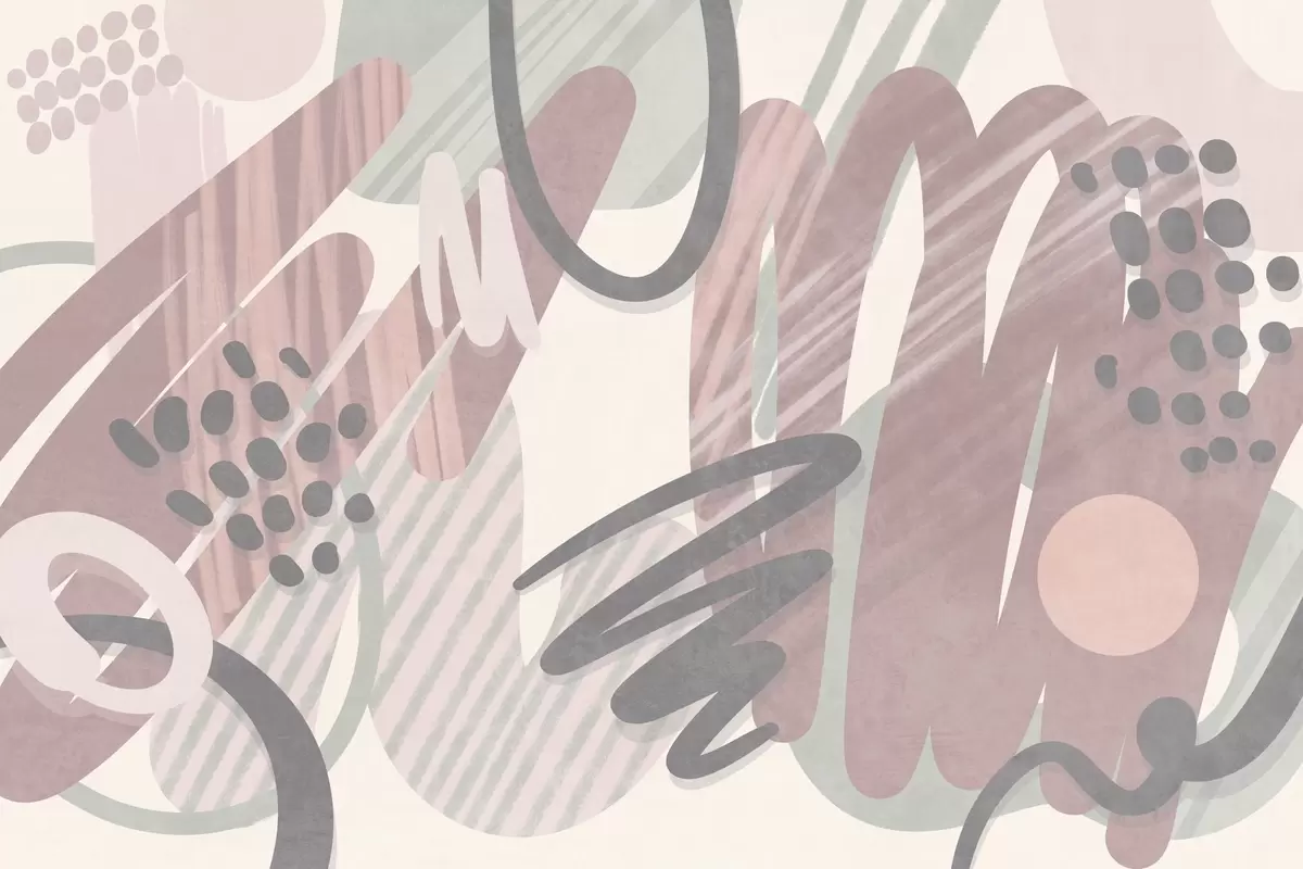 Abstract textured print with organic shapes, scribbles and dots in muted pastel colors - Wall mural (No. w09774v1)