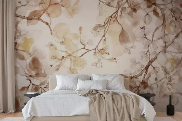 Airy hanging branches in beige tones in watercolor style - Wall mural (No. w09795)