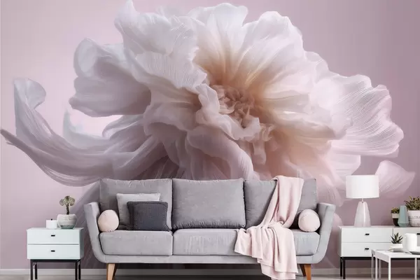 Volumetric silk flower in soft pink and beige tones - Wall mural (No. w09809)