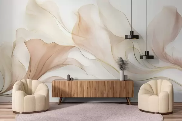 Abstract flowing texture in shades of peach and cream with delicate lines - Wall mural (No. w09815)