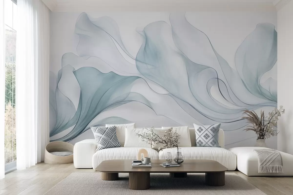 Abstract flowing texture in shades of blue with delicate lines - Wall mural (No. w09815v1)