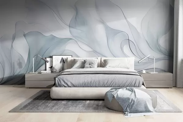 Abstract flowing texture in shades of blue with delicate lines - Wall mural (No. w09815v1)