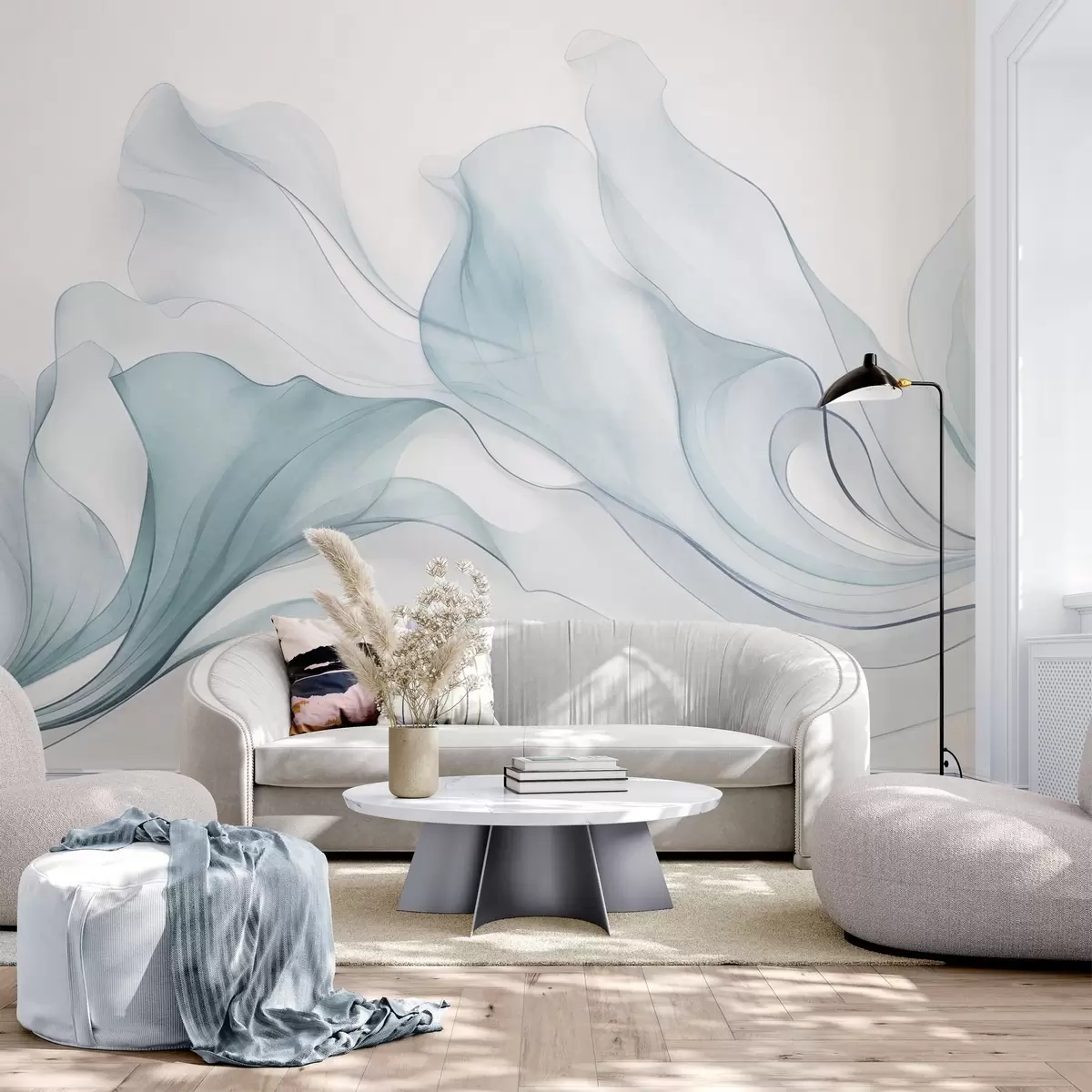 Abstract flowing texture in shades of blue with delicate lines - Wall mural (No. w09815v1)