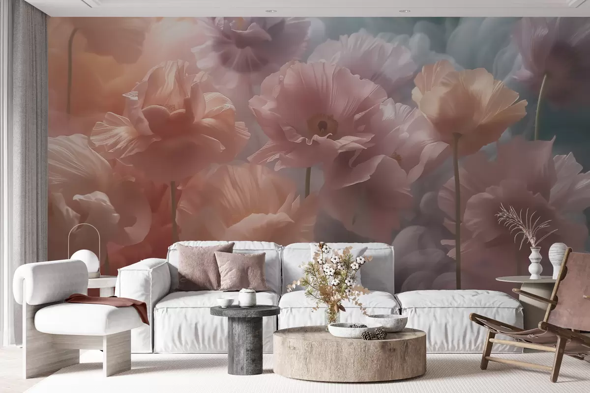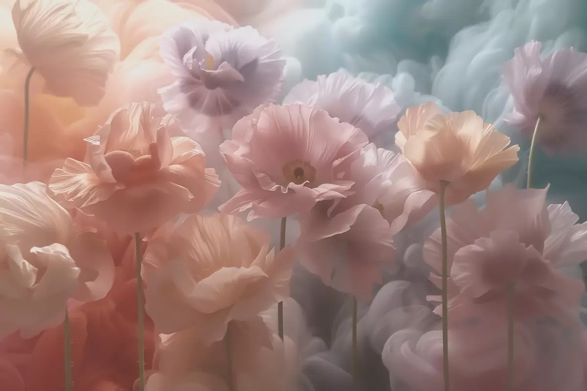 Airy flowers with translucent petals in soft morning light - Wall mural (No. w09847)