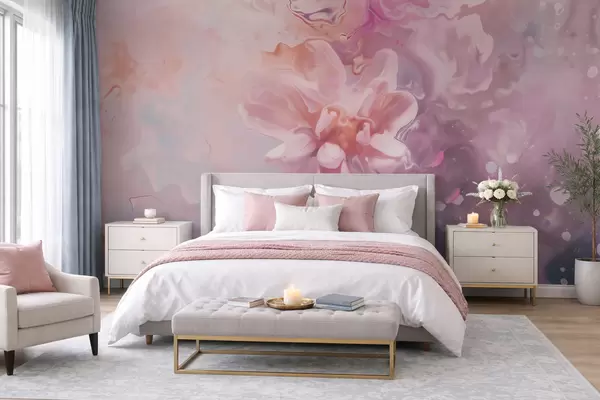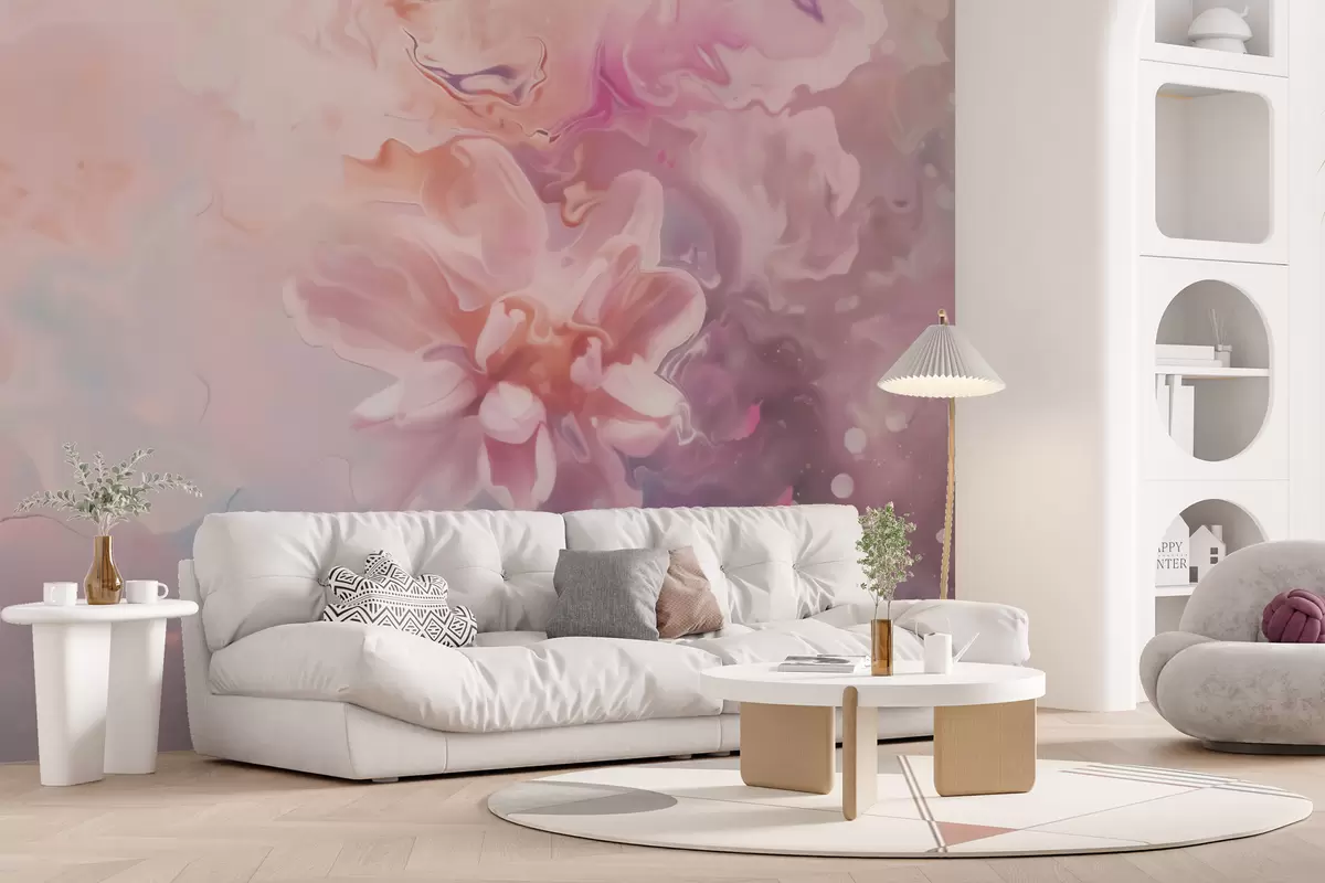 An abstract composition with a flower and soft pink washes in watercolor style - Wall mural (No. w09859)
