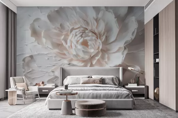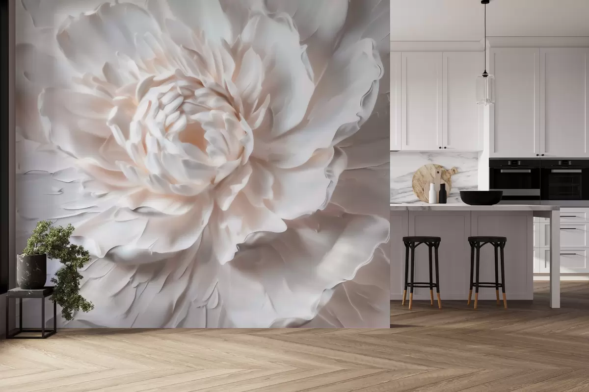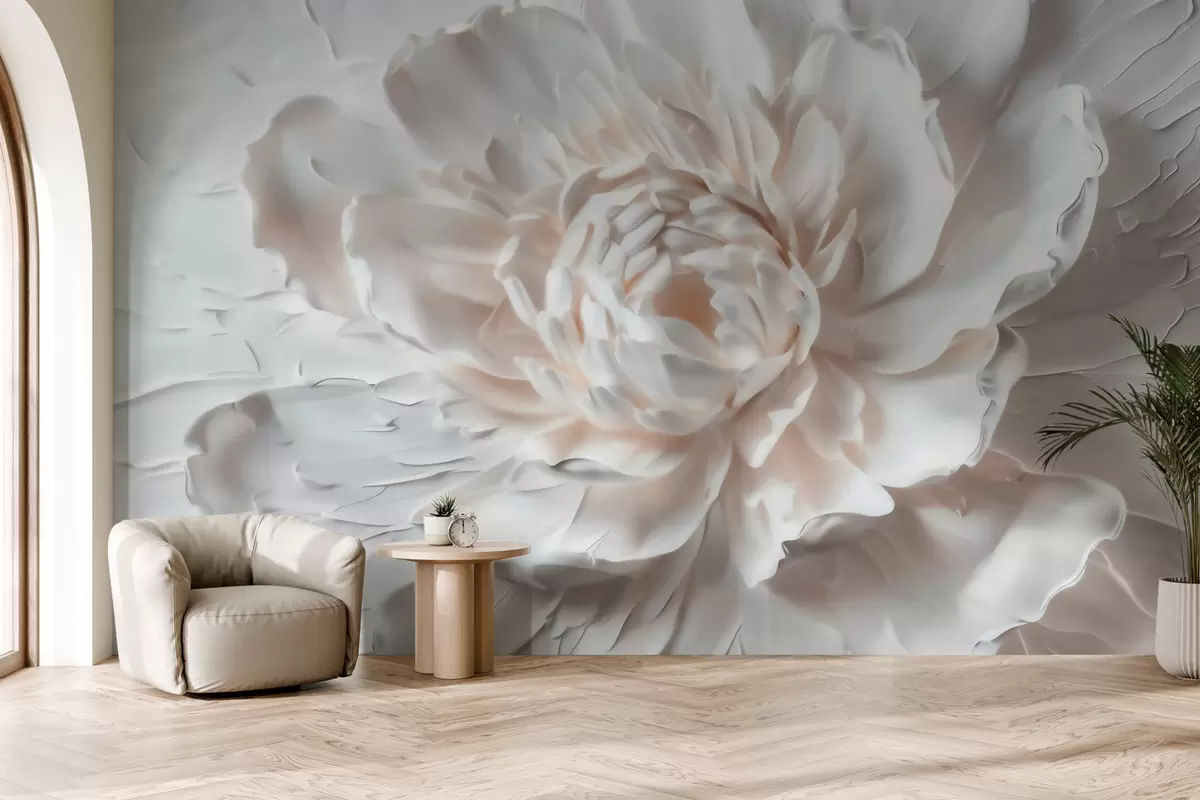 A delicate bas-relief flower with smooth petals in light tones - Wall mural (No. w09861)