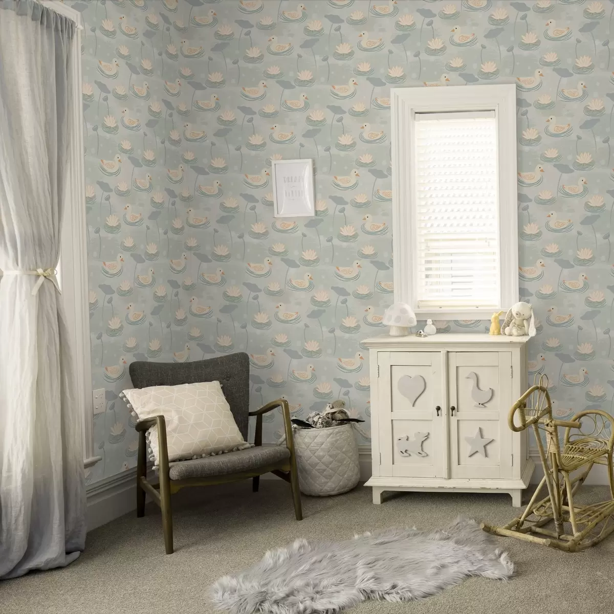 Wallpapers Ducklings in a pond with lotuses No. a00079