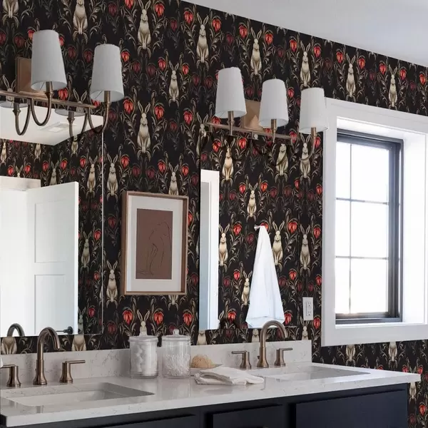 Wallpapers Hare and red flowers on a dark background No. a00102