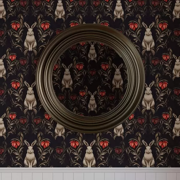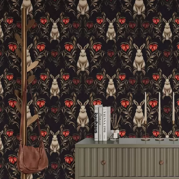 Wallpapers Hare and red flowers on a dark background No. a00102