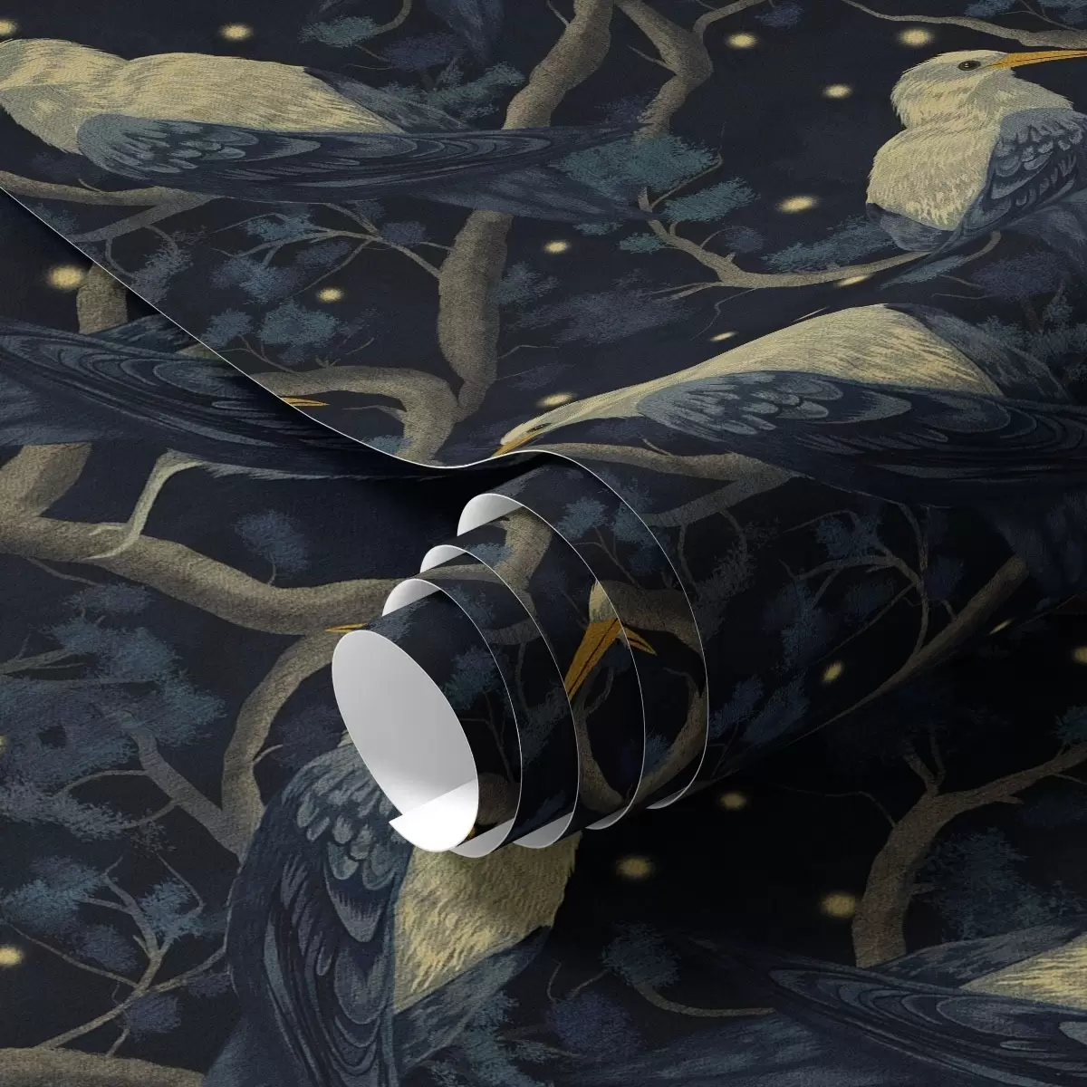 Wallpapers Night birds on branches and stars on a dark blue background No. a00109v1