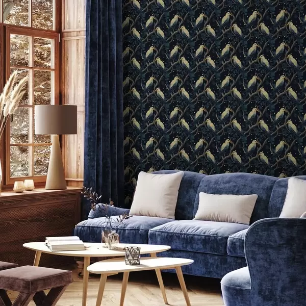Wallpapers Night birds on branches and stars on a dark blue background No. a00109v1