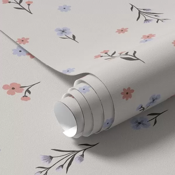 Wallpapers Small flowers in pale pink and blue tones on a cream background No. a00110