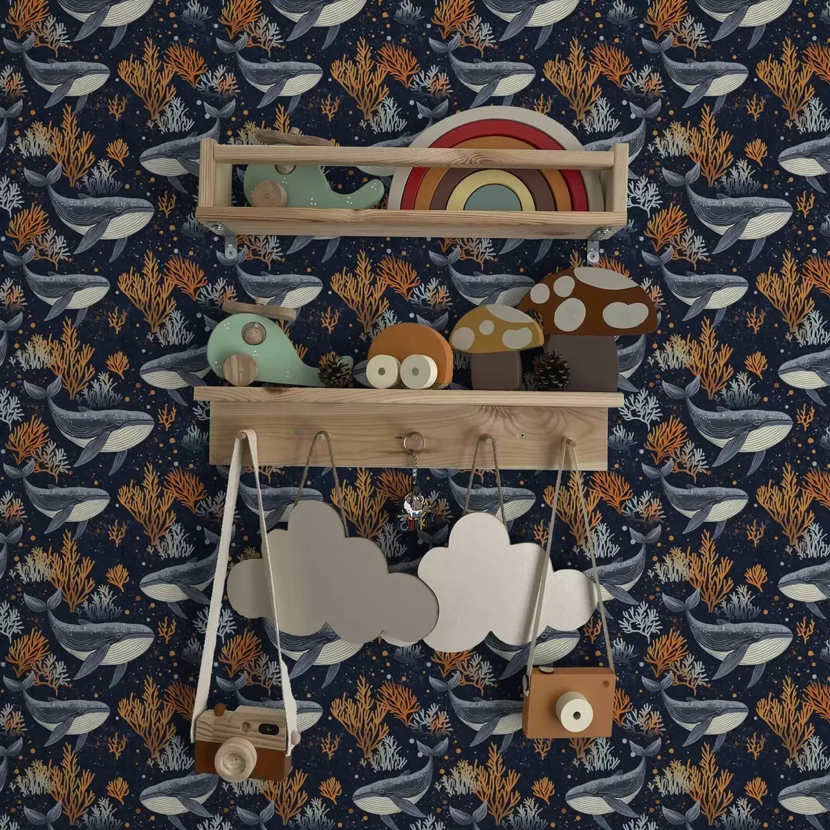 Wallpapers Sea whales and corals on a dark background No. a00116