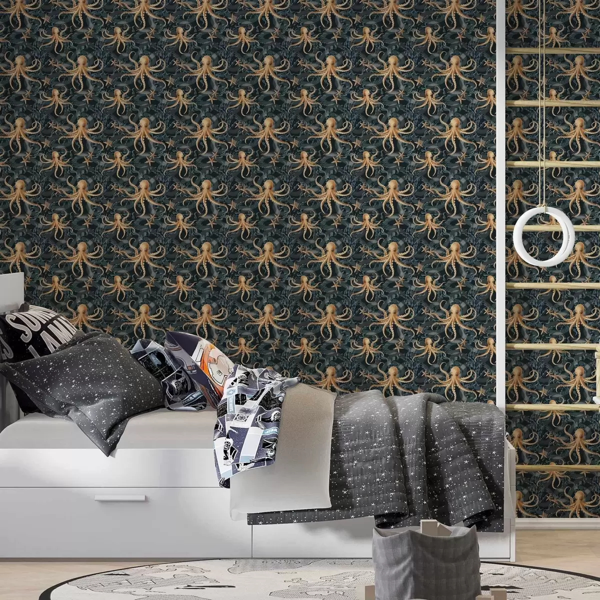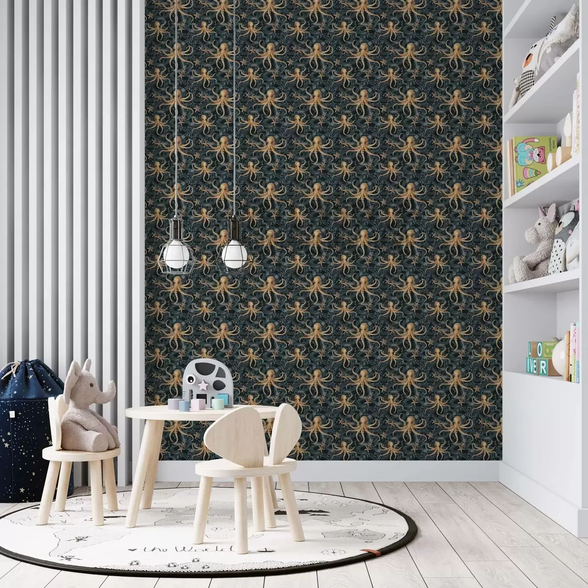 Wallpapers Octopuses on a dark blue background No. a00120v1