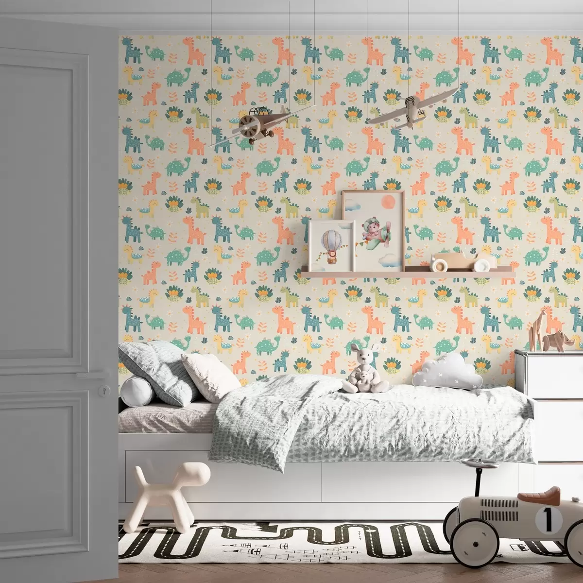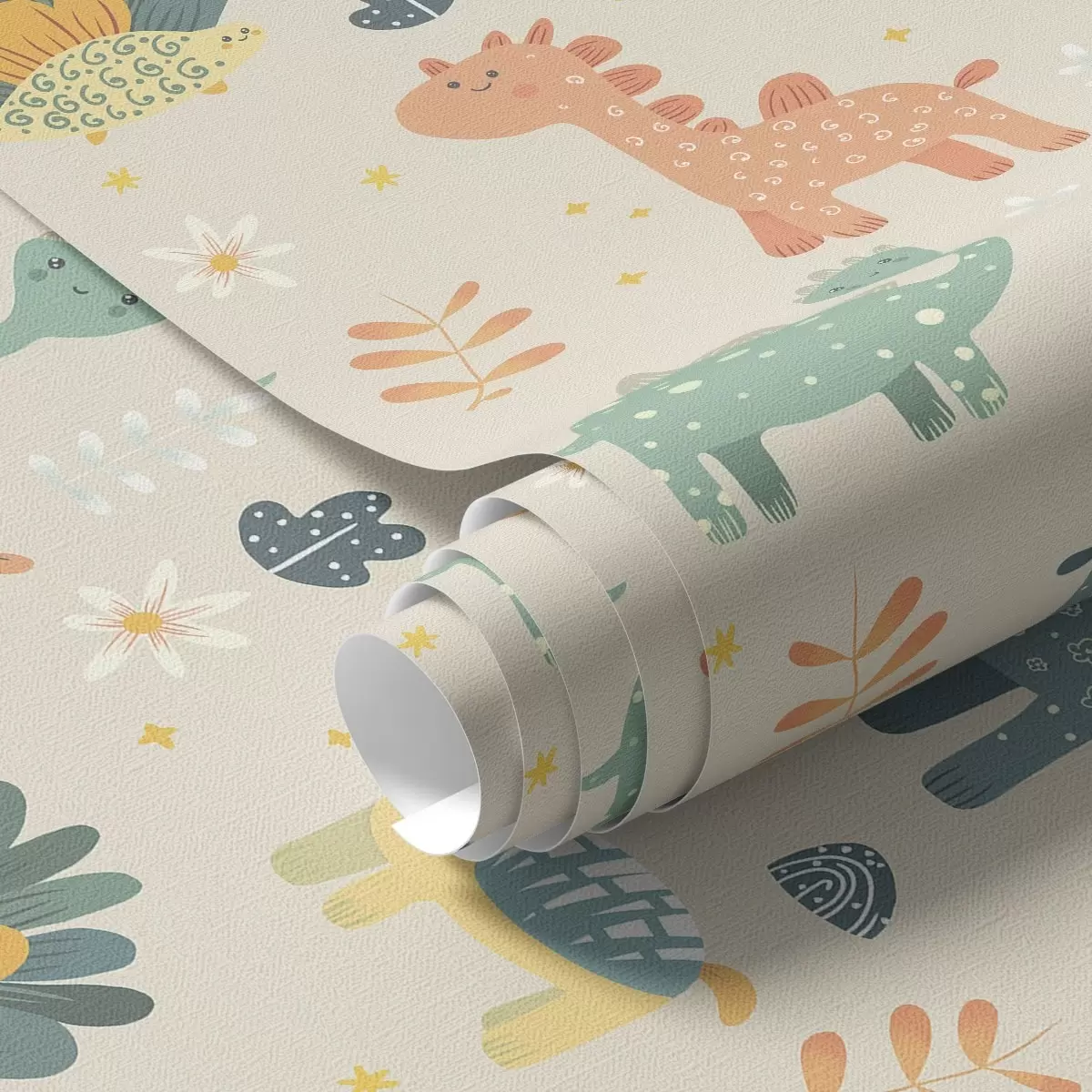 Wallpapers Children's dinosaurs in pastel colours on a light background No. a00125