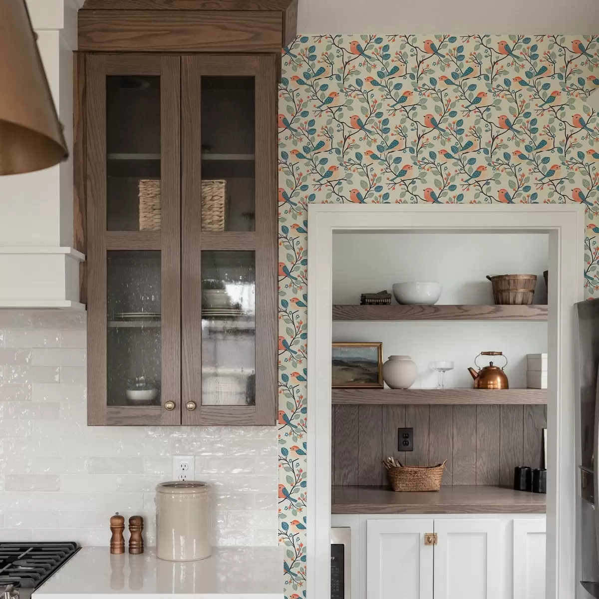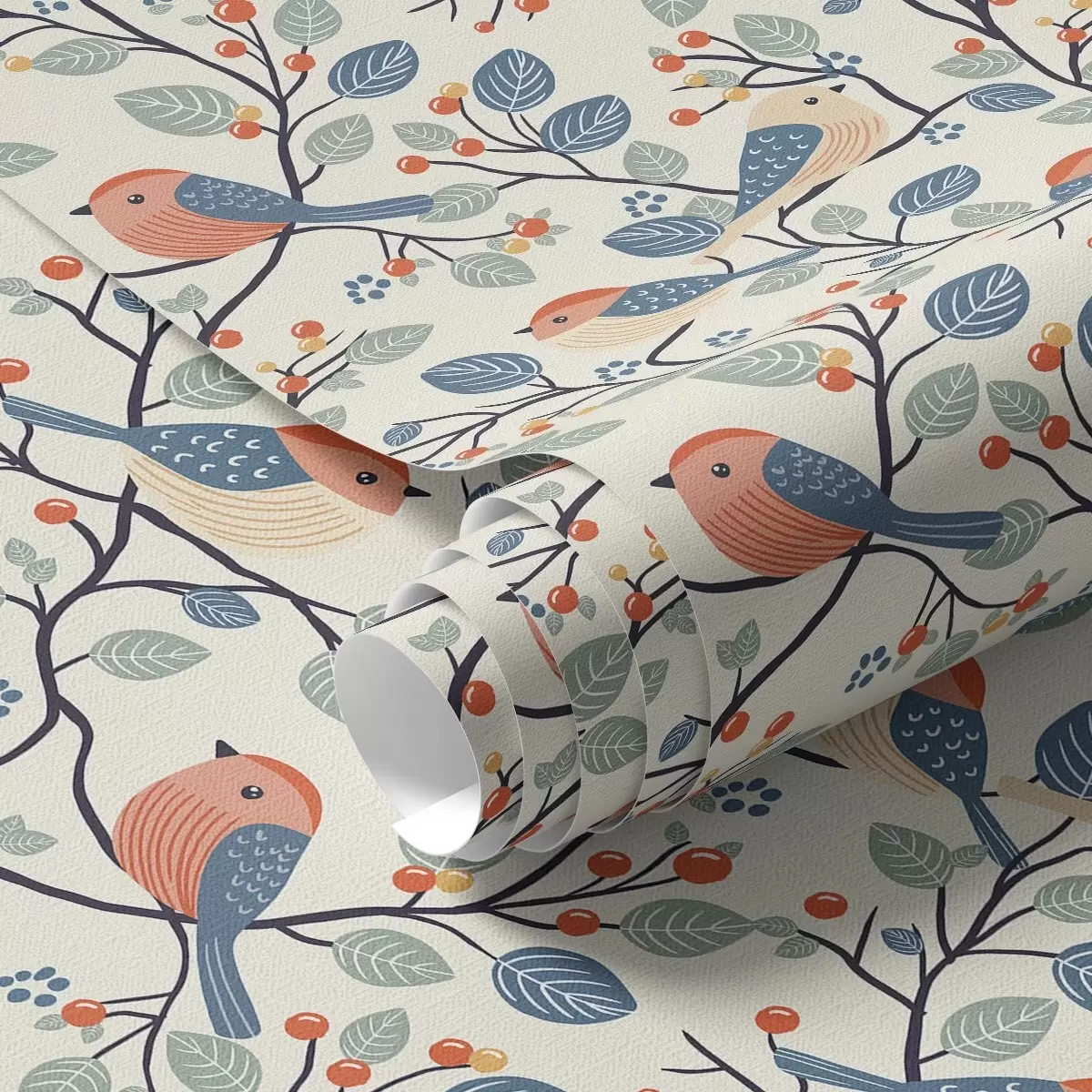 Wallpapers Birds on branches and berries in warm colours No. a00128v1