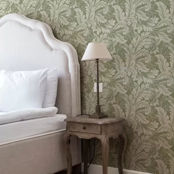 Wallpapers Baroque with cream leaves on green background No. a00135