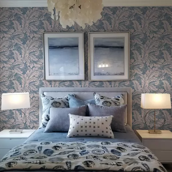 Wallpapers Plant curls in cream tones on blue and grey background No. a00135v2