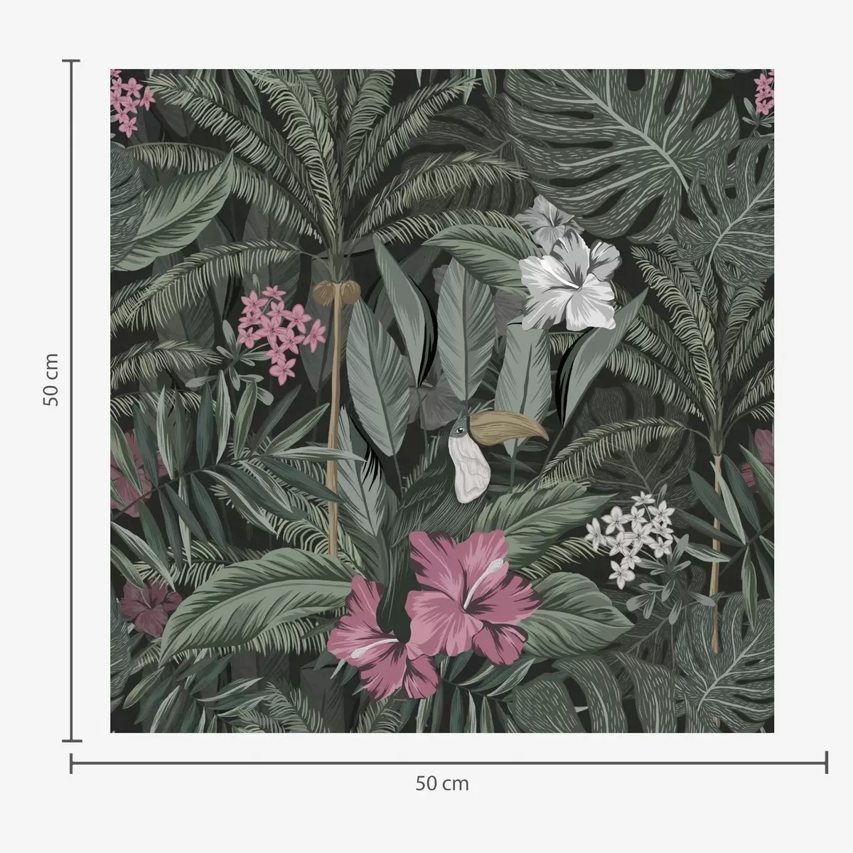 Wallpaper Tropical leaves and bird on a dark background a00140