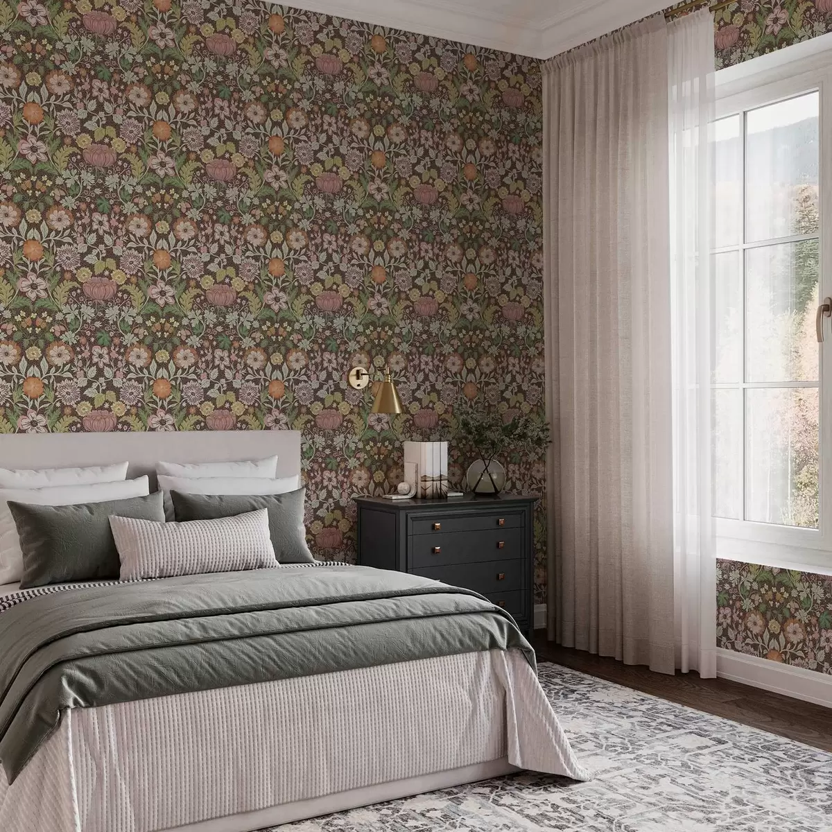 Wallpapers Colourful pattern with greenery and flowers No. a00145v3