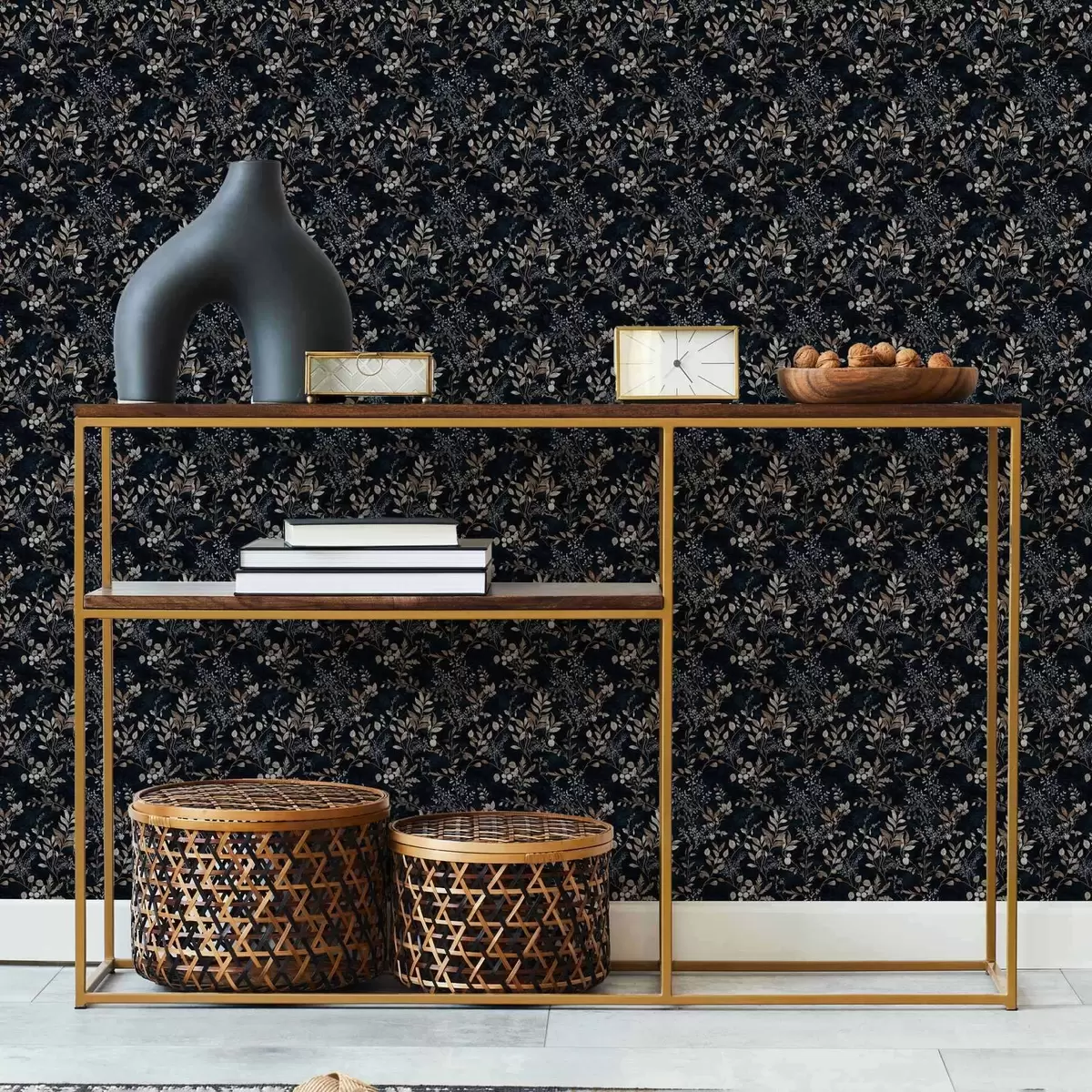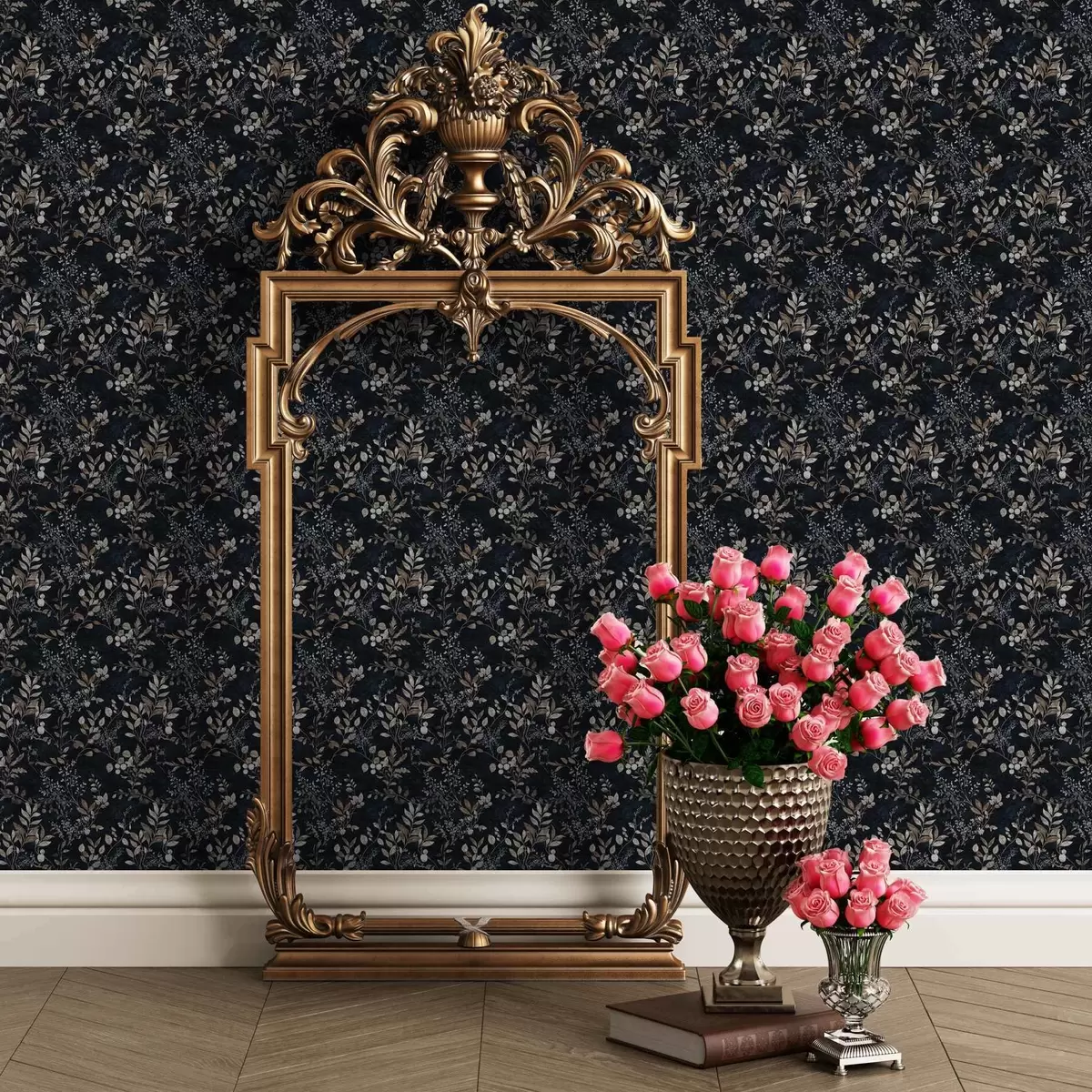 Wallpapers Classic floral print in light colours on a dark background No. a00166v2