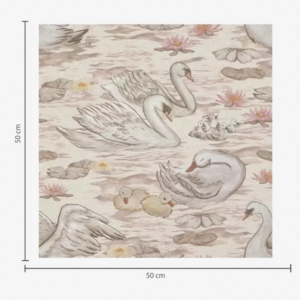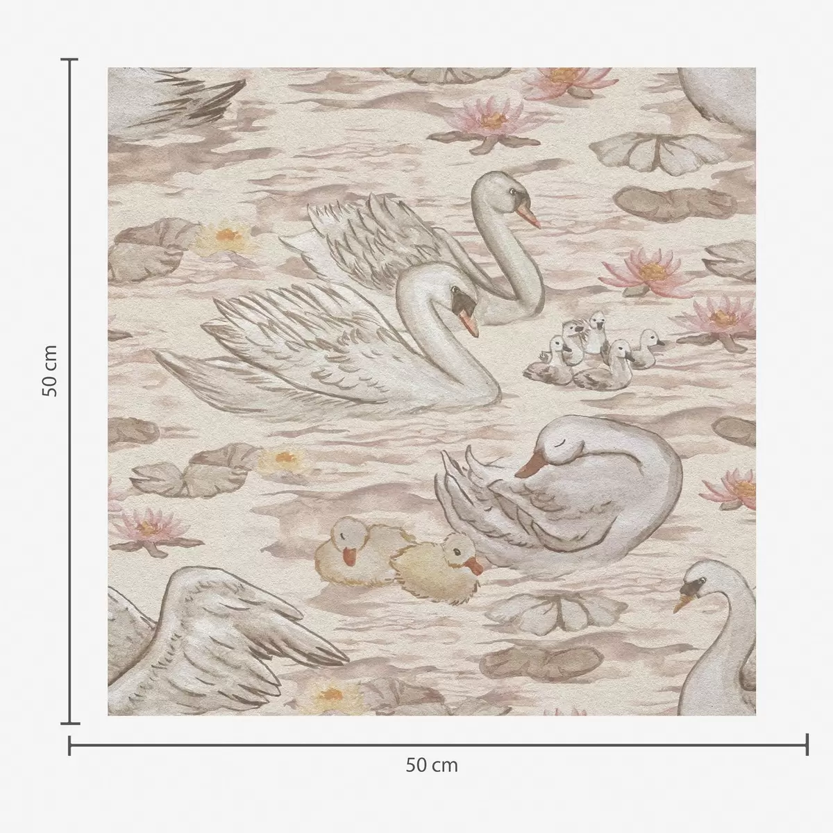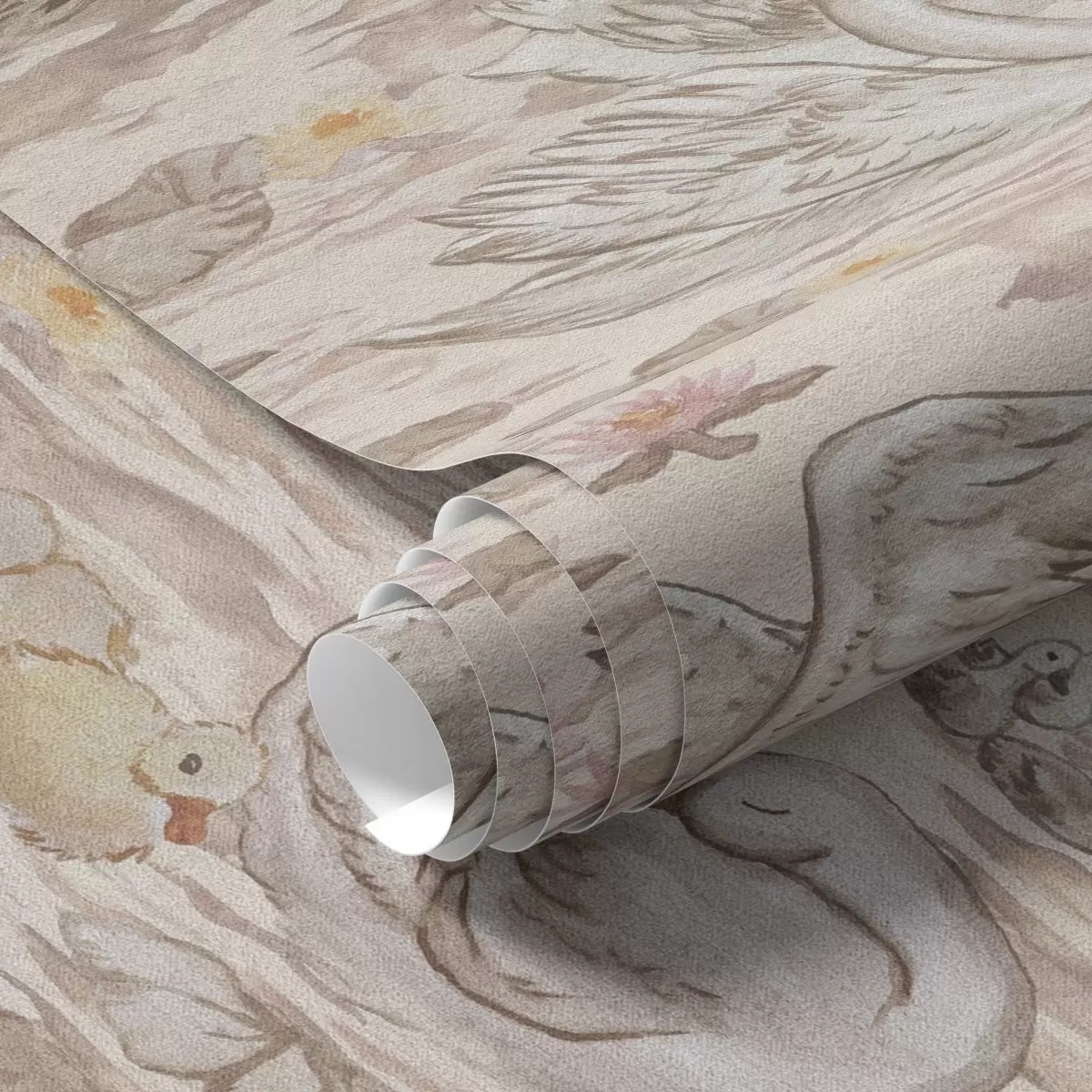 Wallpaper Swans with chicks on pink background with water lilies a00176