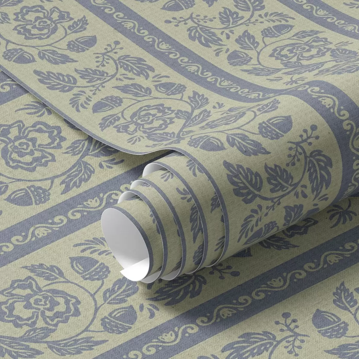 Wallpapers Striped floral ornament with acorns in blue and beige tones No. a00181