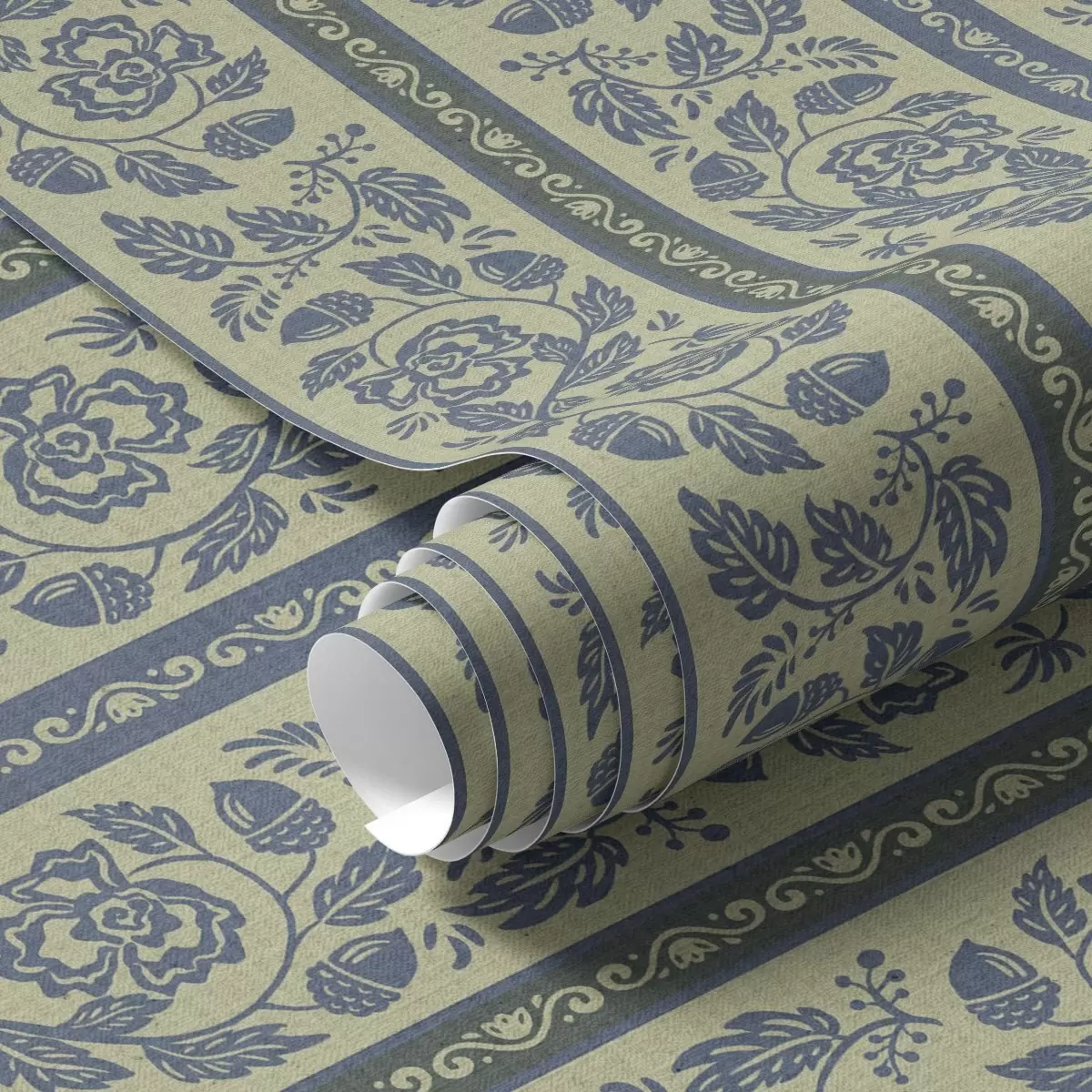 Wallpapers Vintage blue ornament with flowers and acorns No. a00181v1