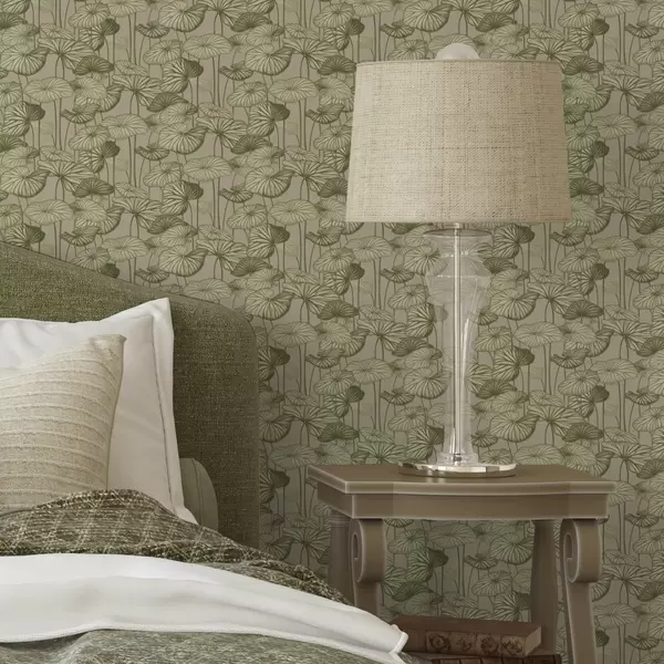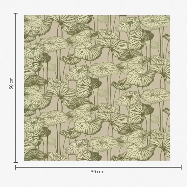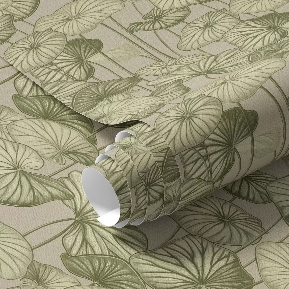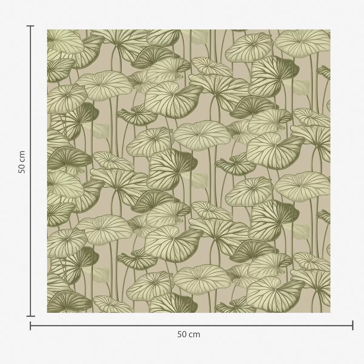 Wallpaper Graphic lotus leaves in retro style on a beige background a00188