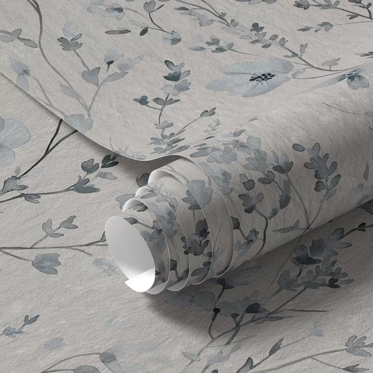 Wallpapers Blue and gray watercolor floristics on neutral background No. a00198