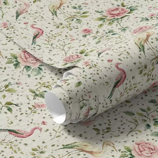 Wallpapers Pastel pink roses and birds in shabby chic style No. a00201