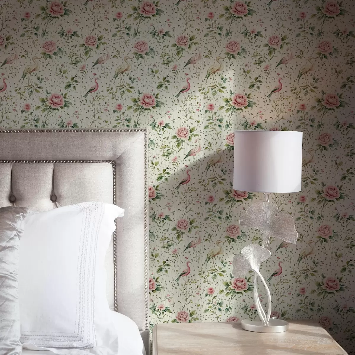 Wallpapers Pastel pink roses and birds in shabby chic style No. a00201