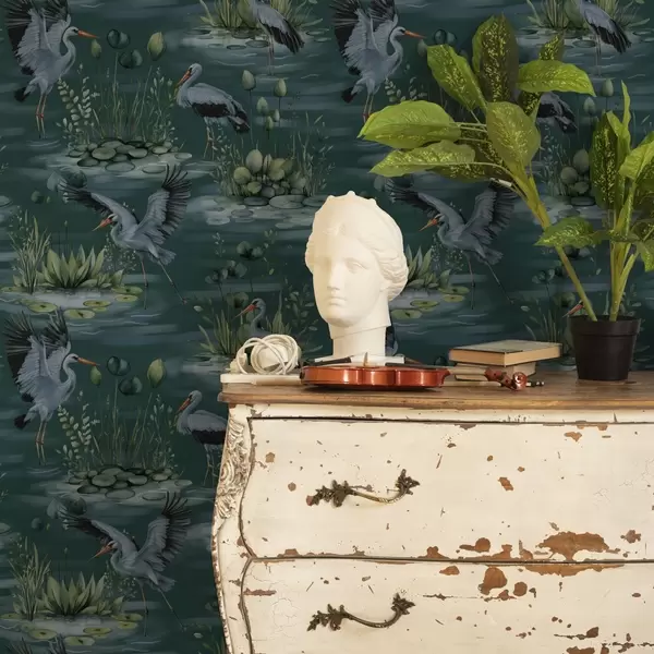 Wallpaper Scenes with herons on the background of ponds and water lilies a00202