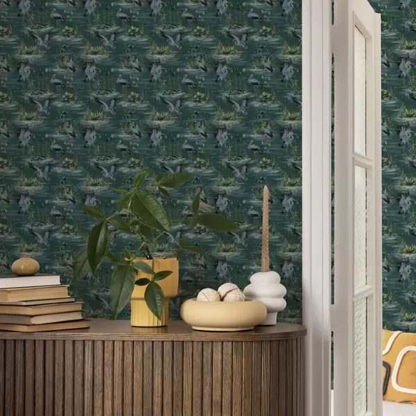 Wallpapers Scenes with herons on the background of ponds and water lilies No. a00202