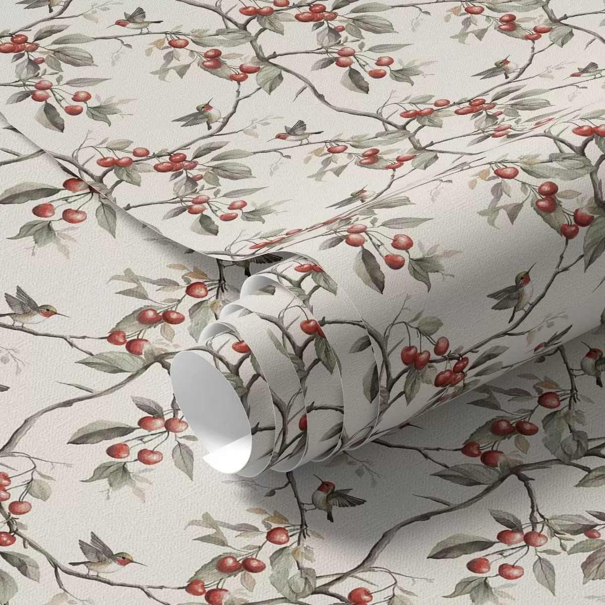 Wallpapers Birds among cherry branches with red berries No. a00206